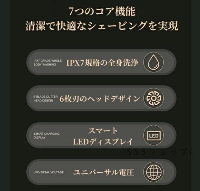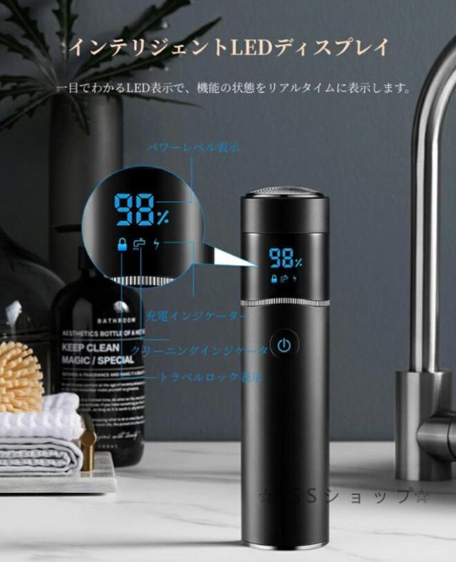電気シェーバー 6枚刃 回転式 電動髭剃り 深剃り 早剃り IPX7防水 乾湿両用 丸洗い USB充電式 シェーバー