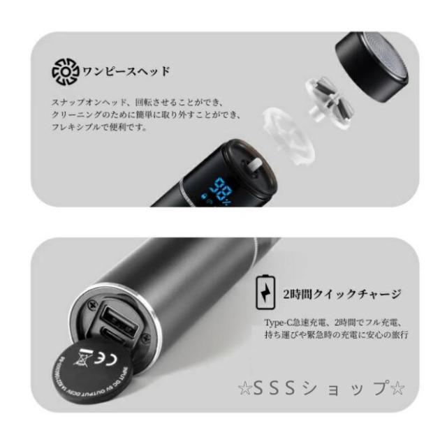 シェーバー本体の長さがわずか13.3cmで、重さが約160gで、手のひらのサイズで、通勤バッグ、トラベルケース、リュックサックやポケットに邪魔にならずに収納可能です。ご自宅用はもちろん、旅行、出張や長時間の外出などにも大活躍します。彼氏、父親、主人や友人などへのプレゼントにもピッタリ!
