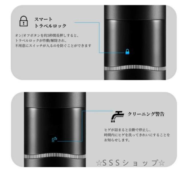 電源残量、安全ロック機能、お手入れ注意の情報は直接にLEDディスプレイで表示され、一目瞭然で快適に使えます。電源スイッチを約3秒ぐらいを長押しすれば、安全ロック機能を起動し、子どもの誤操作を防ぐのはもちろん、ポーチやカバンに置いても、誤動作の心配はありません。