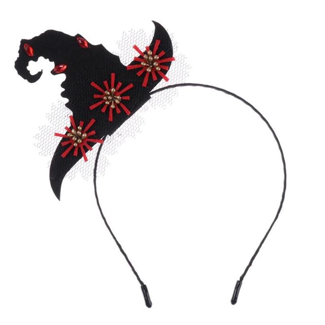魔女の帽子をモチーフにした黒色ブラックのフェルトの帽子に黒色のレースと赤色のビジューとお花のフラワーをデザインしたカチューシャ。ゴシックロリータなスタイルにぴったりのヘッドバンドです。ハロウィンパーティやコスプレパーティ、クリスマスパーティなど仮装パーティでも大活躍できる男性からも女性からも人気のヘアバンド。