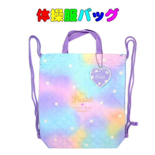 体操服バッグ 体操服袋 巾着袋 大 パステル柄 ナップザック リュックサック 巾着 体操着入れ 体操服入れ お着替え袋 入園 入学 通園 通学