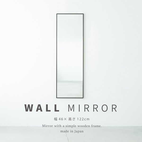 細枠ウォールミラー(46×122)(ブラウン/茶) 天然木 姿見鏡 スリム 高級感 木製 飛散防止加工 壁掛け 北欧風 玄関 洗面 トイレ 日本製 完成品 NK-41