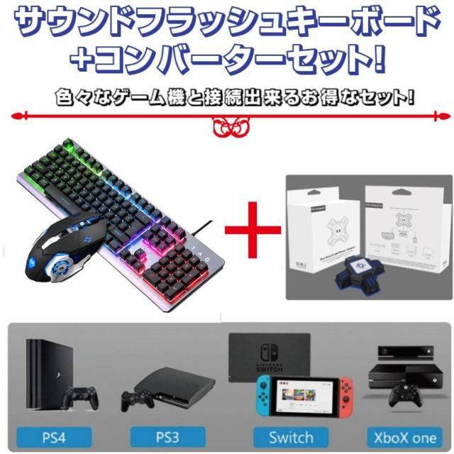 3点セット サウンドフラッシュゲーミングキーボード マウス コンバーターセット スイッチ ライト Switch Lite PS4 誕生日 プレゼント英字配列 送料無料