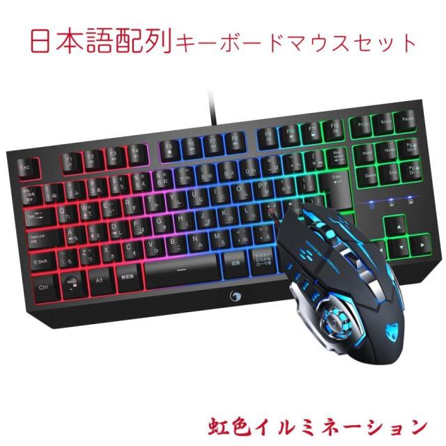 ゲーミングキーボードマウスセット 日本語配列 91キー 虹色イルミネーション 有線キーボード 有線マウス 1680万色RGB 高耐久 プレゼント ギフト 誕生日 男の子 女の子 サプライズ クリスマス
