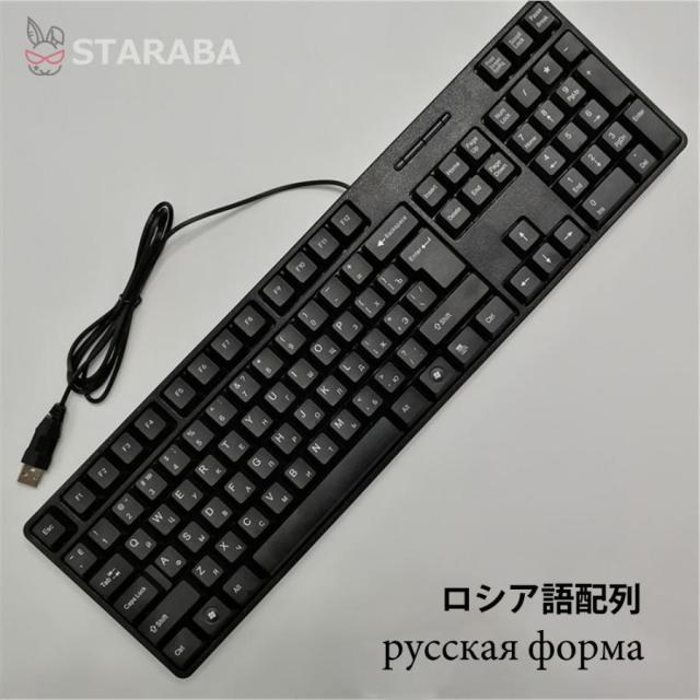 キーボード ロシア語配列 有線 薄型 軽量 有線キーボード ロシア語 パソコン キーボード 有線 USB 角度調節スタンド付 送料無料