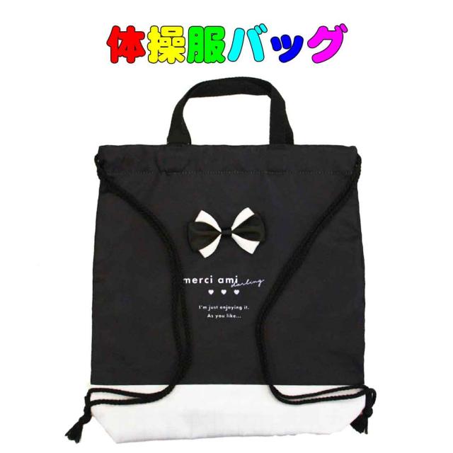 体操服バッグ 体操服袋 巾着袋 大 merci ami柄 ナップザック リュックサック 巾着 体操着入れ 体操服入れ お着替え袋 入園 入学 通園 通学