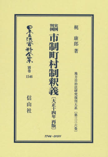 [書籍]/実例判例市制町村制釈義 大正十四年 復刻 (日本立法資料全集)/梶康郎/著/NEOBK-2798734