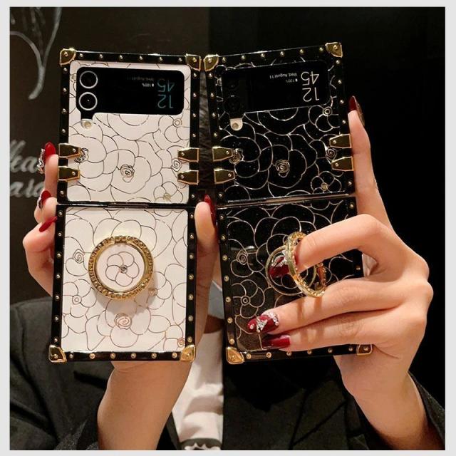 galaxy z flip4 ケース 花柄 背面 リング付き galaxy z flip4 カバー ギャラクシーZ フリップ4 ケース スマホケース galaxy z flip4 ケース リング バンパー シンプル スタンド 大人かわいい 花柄 韓国 おしゃれ 対衝撃 スマホケース