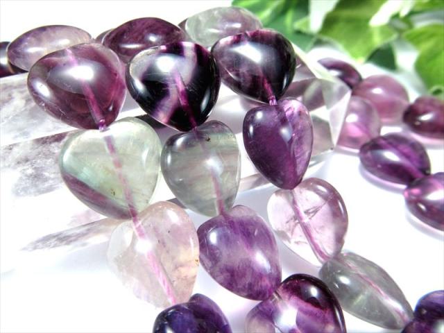 マルチカラー フローライト 蛍石 ハート型 最大幅約12mm 一連 約38cm-40cm 色鮮やか マルチカラー ブラジル産 パワーストーン 天然石
