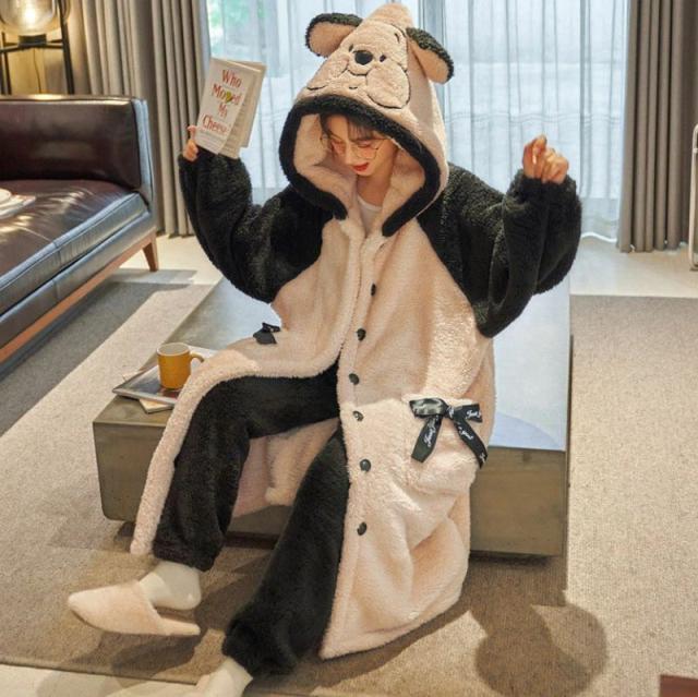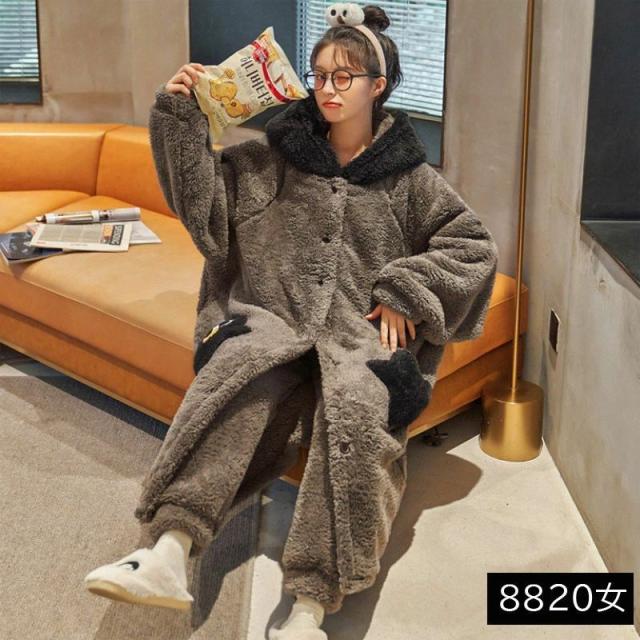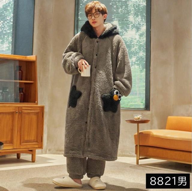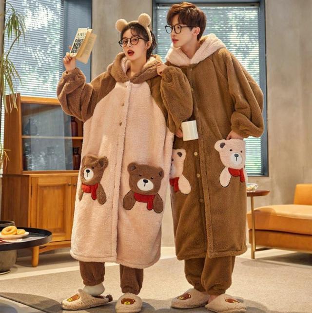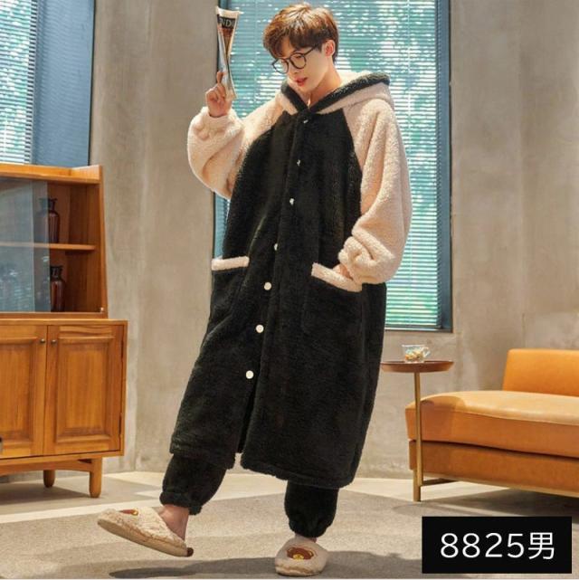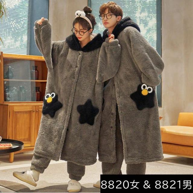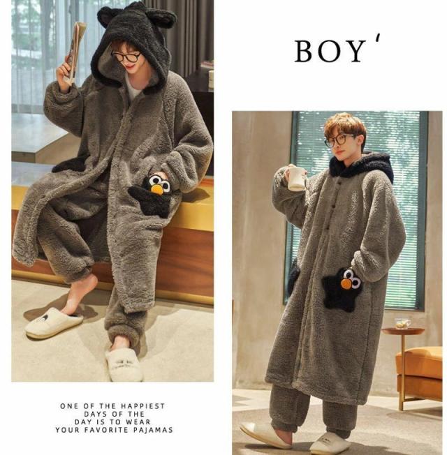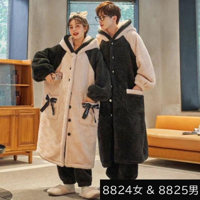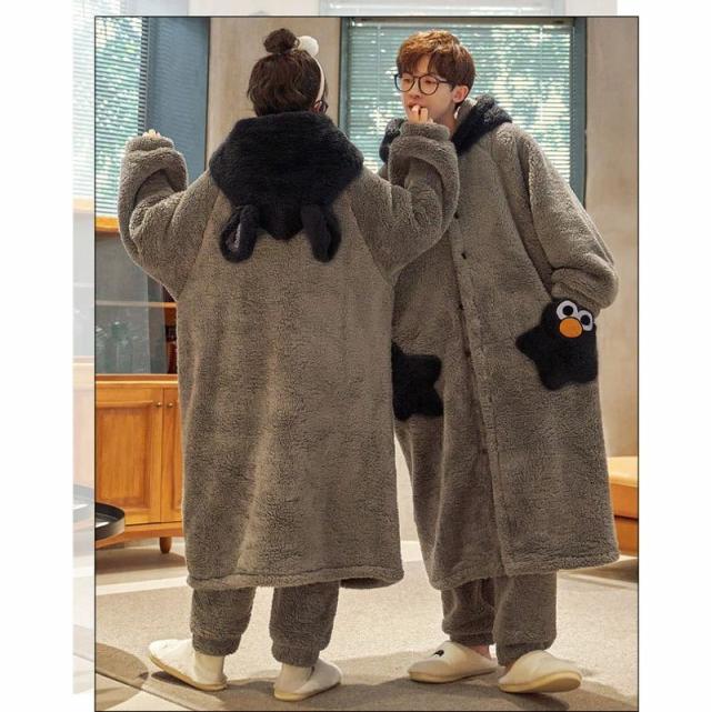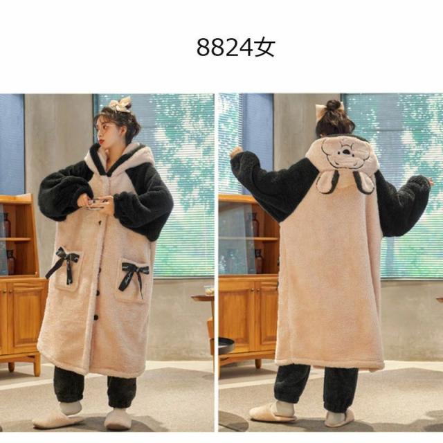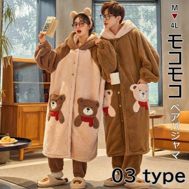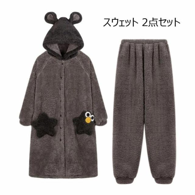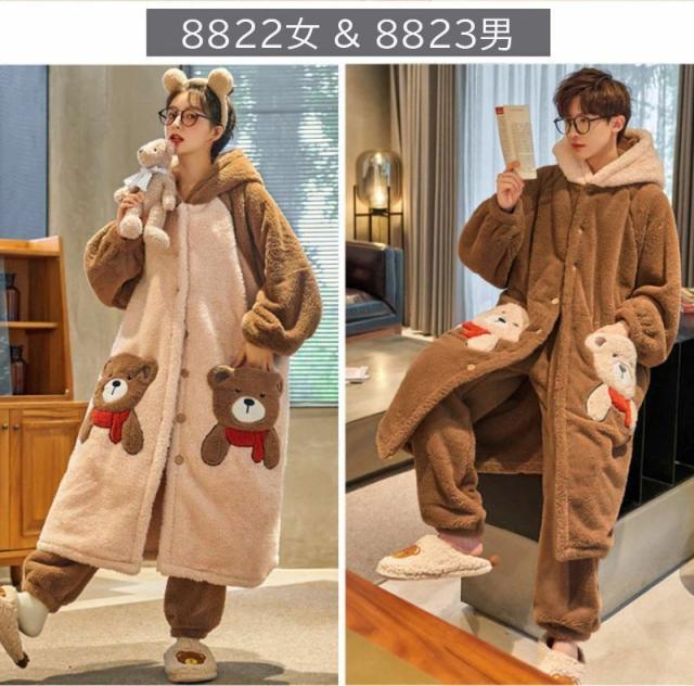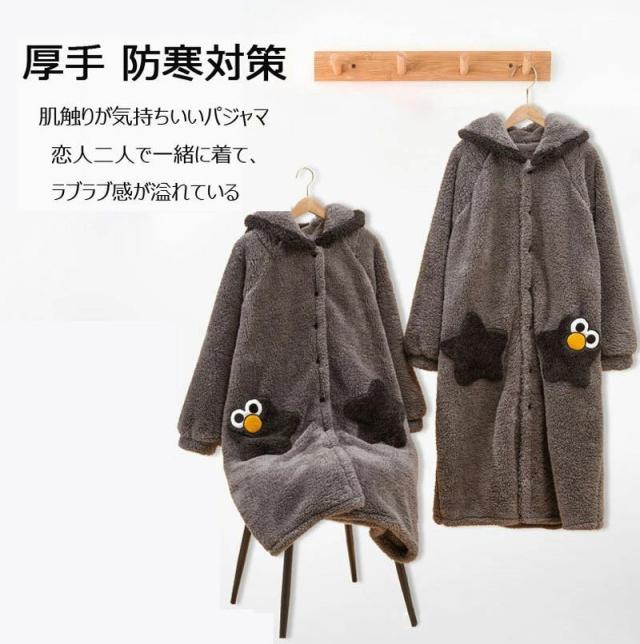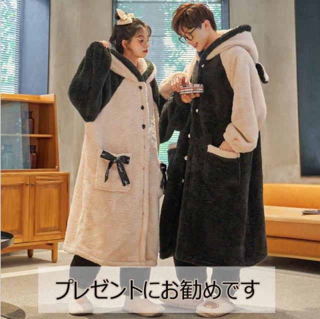 ペアパジャマ 冬 モコモコルームウェア ペアパジャマ カップル上下セット パジャマ ペア 長袖 ルームウェア スウェット 上下セット 冬 レディース メンズ ナイトガウン 前開き 厚手 ふわもこ ルームウエア ユニセックス プレゼント