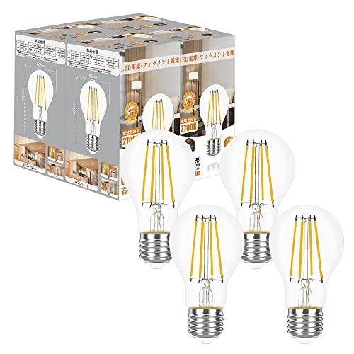 LED電球 E26口金 電球色 60W形相当 810ルーメン フィラメント電球 一般電球形 全方向タイプ クリア電球 断熱材施工器具対応 密閉器具対応 調光不可 省エネ 4個入り
