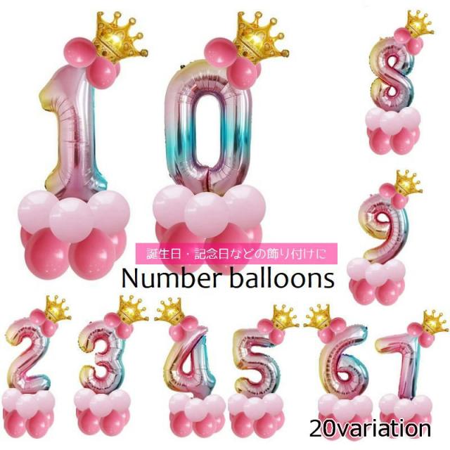 ナンバーバルーン 数字 アルミ風船 誕生日 記念日 飾り付け デコレーション 王冠 クラウン ユニコーン お子様 ペット カップ
