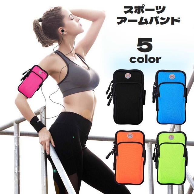 スポーツアームバンド アームポーチ レディース メンズ 男女兼用 イヤホン穴付き 伸縮性 調節可能 ファスナー スマホ入れ ラン