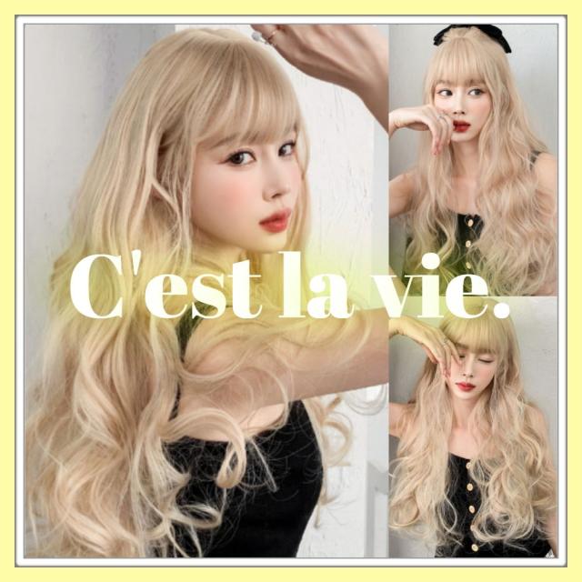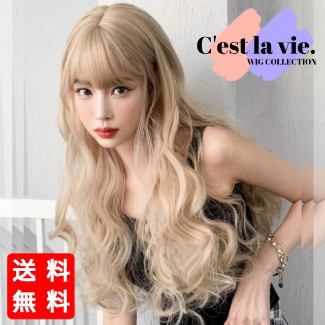 翌日出荷 フルウィッグ ロング ウェーブ ハイトーン ブロンズ 医療用 かつら ネット付き 自然 小顔