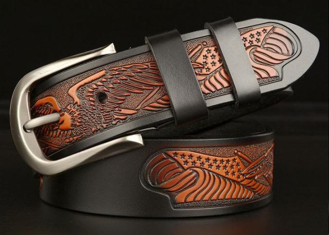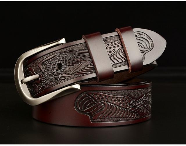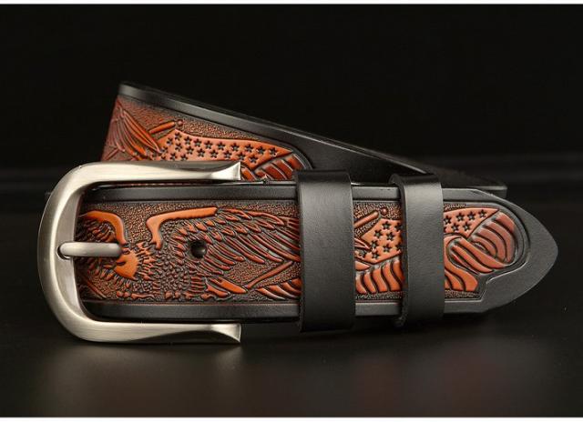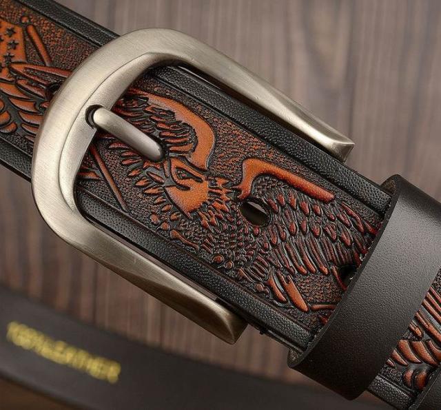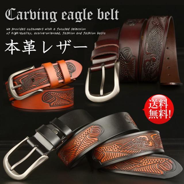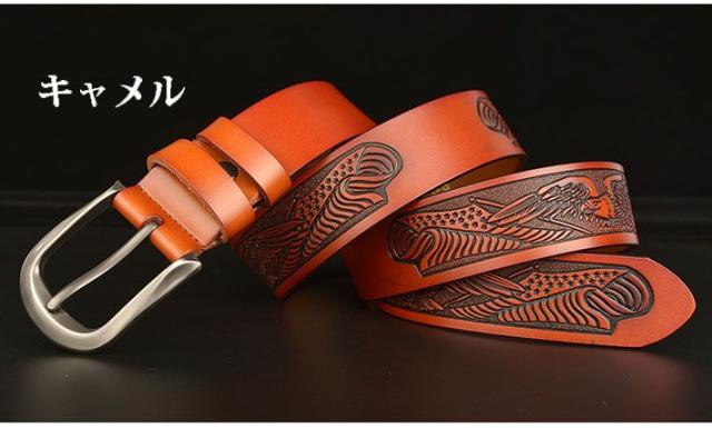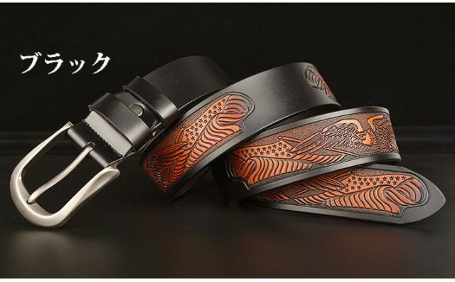 【サイズ調整可能】ベルト メンズ 本革 レザー イーグル 鷲 カービング GENUINE LEATHER 7988620 大きいサイズ 対応 カジュアルベルト クリスマス プレゼント ギフト 父の日