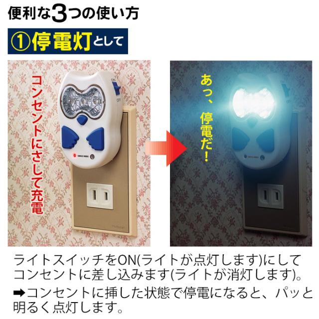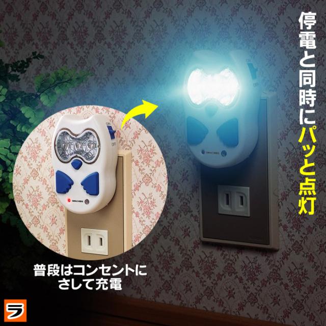 ふくろう型停電灯 2 停電時自動点灯ライト コンセント充電 非常灯 停電 自動点灯 ライト 防災 停電対策 フットライト ナイトライト 足元灯 寝室 廊下 停電ライト led 非常用 持ち出し 懐中電灯