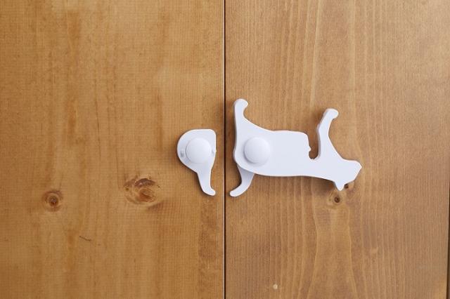 安全ロック ねこの安心扉ロック 後付け チャイルドロック 開き戸 両開き扉 ブラック ホワイト 猫 ネコ いたずら防止 赤ちゃん 地震 防災グッズ 観音扉 観音開き ロック ストッパー 日本製