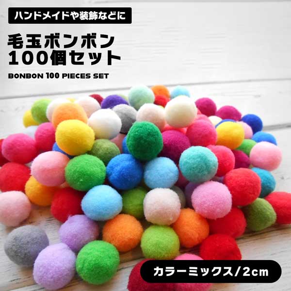 【100個セット】 ボンボン 2cm カラーミックス ボンテン 手芸 マスコット ポンポン カラー ボール カラーボール 毛玉 ミニ毛玉 ミニ 小さい ハンドメイド DIY 手作り 幼稚園 保育園 製作 制作 送料無料