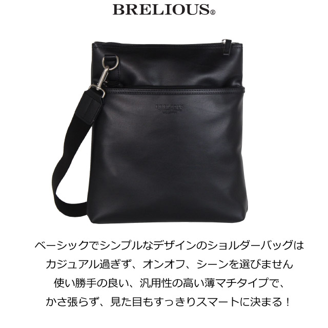 ショルダーバッグ メンズ 斜めがけ かっこいい BRELIOUS ブレリアス タテ型ショルダー B5サイズ 16445 ショルダーバック メンズ 男性用 肩掛け 斜め掛け ブラック 黒 旅行 合皮 大人 通勤 ビジネス 父の日 敬老の日 プレゼント ミニショルダー 薄マチ 日本製 豊岡製