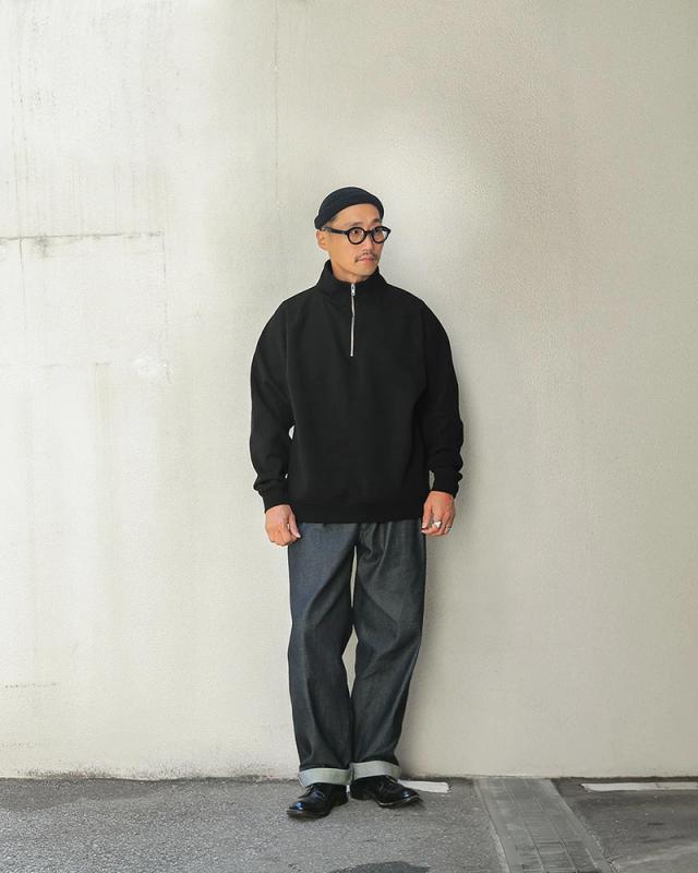 ONEITAより、無地でも存在感のあるずっしりとした生地感のヘヴィウェイトスウェットのハーフジップ長袖シャツが登場。現代的なエッセンスを取り入れた、ONEITA POWER-SWEATのブランドネームを搭載。およそ15ozの肉厚で丈夫な生地で、快適な着心地にこだわったラグラン袖とルーズフィットシルエット。製品洗い加工のみで、小綺麗な印象で仕上げられています。一見するとシンプルなデザインですが、首元のジッパーがポイントになっていて、ジップの開け具合で違った印象を与えます。 カジュアルにも、キレイ目のスタイルにも相性が良く、幅広いコーディネートに活躍するアイテムです。