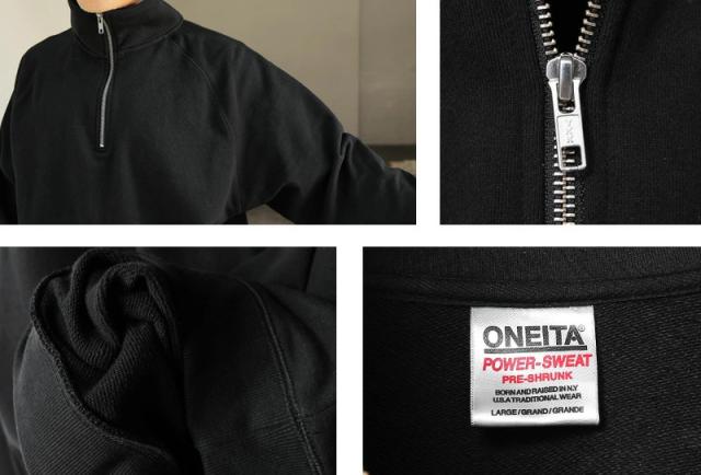 ONEITA オニータ 029ON POWER-SWEAT パワースウェット ハーフジップ スウェットシャツ【T】【Sx】|メンズ ミリタリー アメカジ ラグラン袖 ヘヴィウェイト 無地 長袖 カジュアル メンズファッション 冬 春