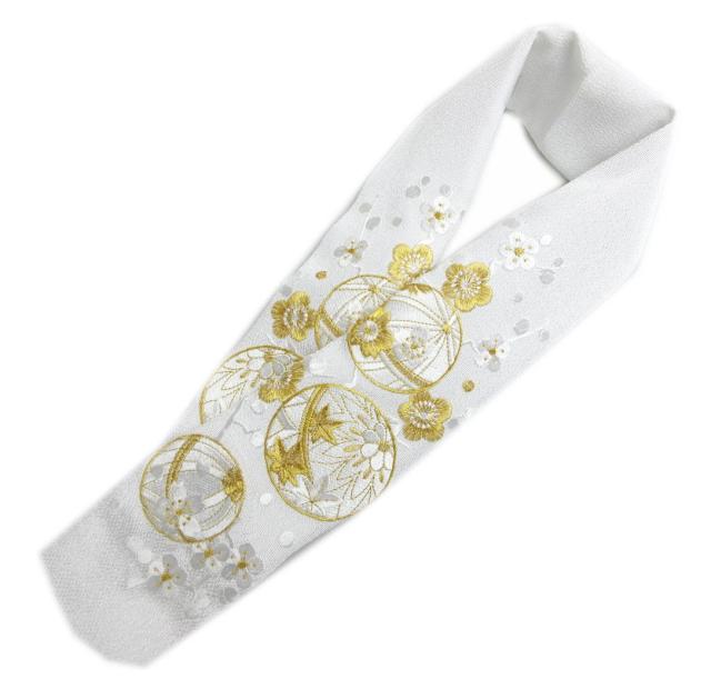 半衿 半襟 刺繍 白色地 金糸入り 鞠梅桜 振袖 成人式 卒業式 袴 着物 女性用 レディース 振袖用 訪問着 きもの はかま