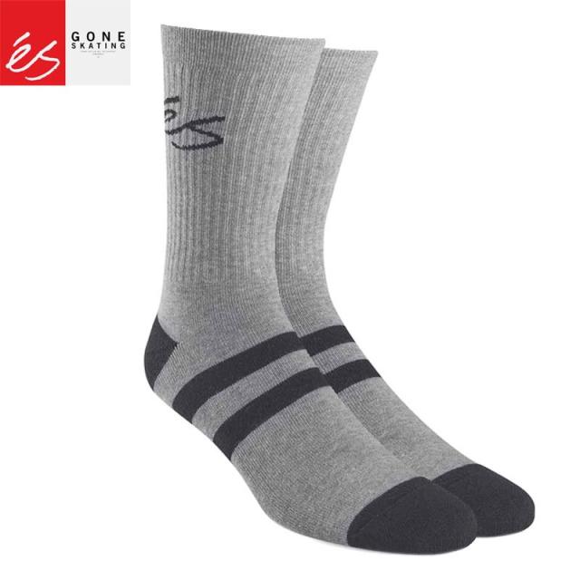 エス ES FOOTWEAR スケボー ソックス SCRIPT STRIPE CREW SOCKS グレー NO8