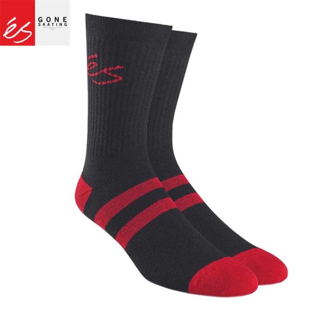 エス ES FOOTWEAR スケボー ソックス SCRIPT STRIPE CREW SOCKS ブラック NO9