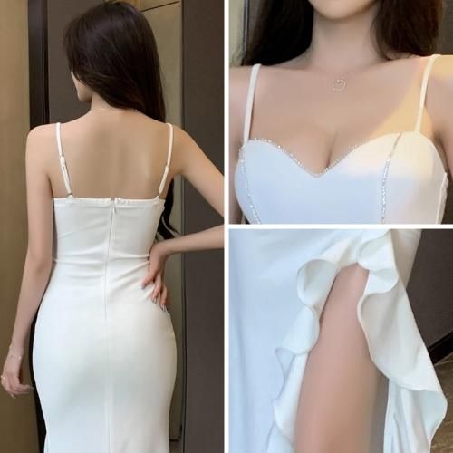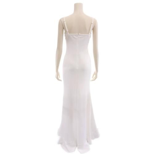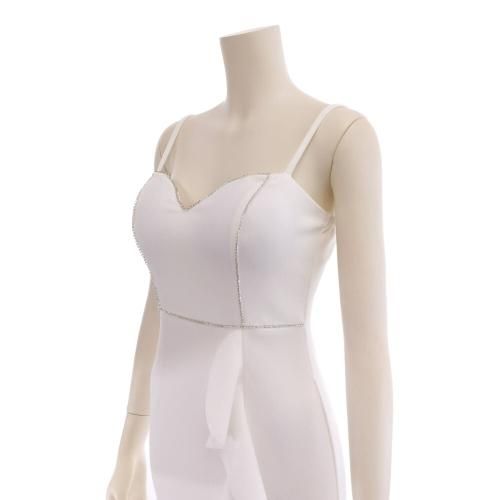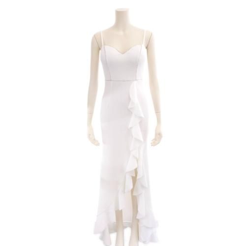 【グラシア】 キャバ ドレス キャバドレス ワンピース パーティードレス エレガント スリット デコルテ ビジュー フリル ロング ゆったり 華やか 大胆 ホワイト S M L