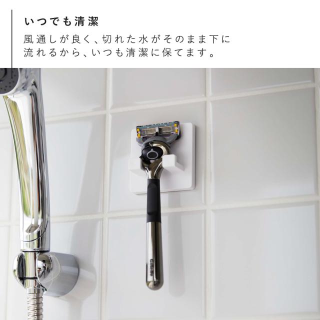 シェーバーホルダー,かみそり,カミソリ,髭剃り,ひげ剃り,ホルダー,スタンド,バスルーム,お風呂,浴室,風呂,お風呂用,バス収納,バス小物,洗面所,洗面室,洗面台,壁,壁掛け,壁面,引っ掛け,引っかけ収納,掛ける,フック,小物,フィルムフック,浮かせる,浮かせる収納,空中収納,簡単設置,カビ,汚れ,ヌメリ,ぬめり,予防,防止,清潔,衛生的,汚れ防止,汚れにくい,山崎実業,山崎,yamazaki,MIST,ミスト,ホワイト,白,シンプル,シンプルデザイン,スタイリッシュ,モノトーン,コンパクト,省スペース,生活感が出ない,すっきり,おしゃれ,お洒落,オシャレ,インテリア,雑貨,部屋,賃貸,マンション,アパート,トータルコーディネート,新生活,引越,引越し,引っ越し,新築,新居,家族,ファミリー,片付け,整理整頓,アイデア,便利,便利グッズ,便利アイテム,おすすめ,オススメ,人気