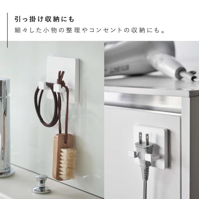 ドライヤーなどのコンセントプラグの収納にも。ヘアゴムなどの小物掛けとしても。