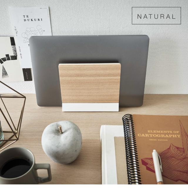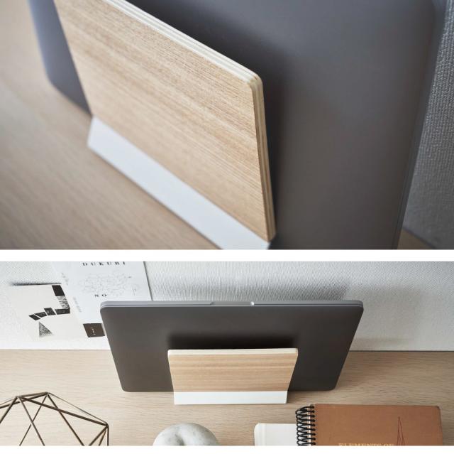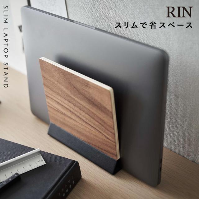 ノートパソコン タブレット 収納 テーブル 有効活用 立てて収納 山崎実業 RIN 木目調 スリム スリムノートパソコンスタンド リン