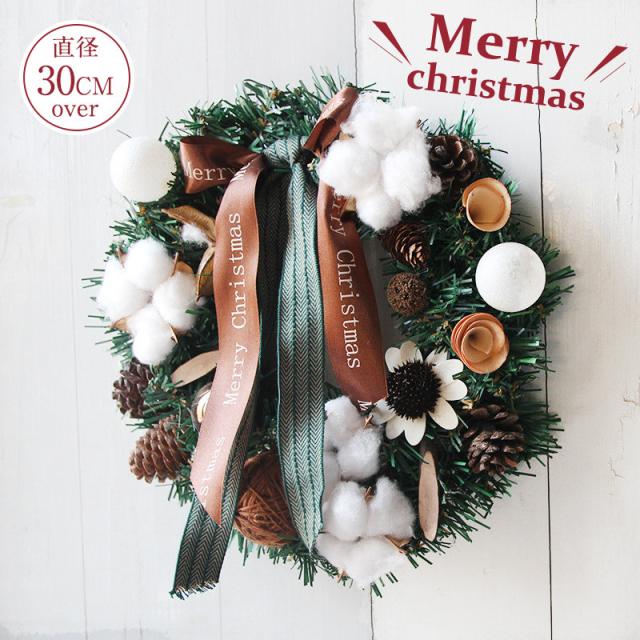 クリスマスリース 花輪 クリスマス フラワーリース 玄関 ライト付け 北欧 30cm ドア飾り 玄関飾 英字 クリスマス飾り おし