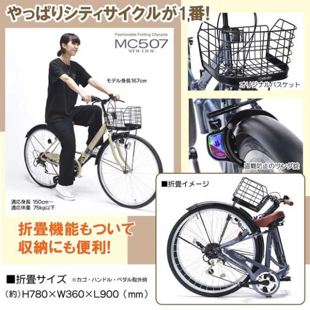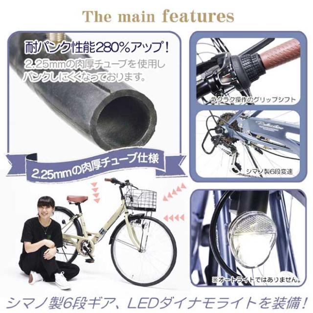 自転車 折りたたみ自転車 【全品P3倍】 26インチ シティサイクル シマノ製6段変速 ママチャリ おしゃれ マイパラス MC507valore
