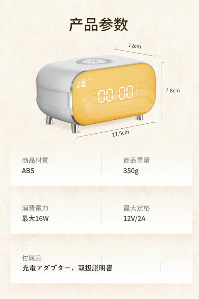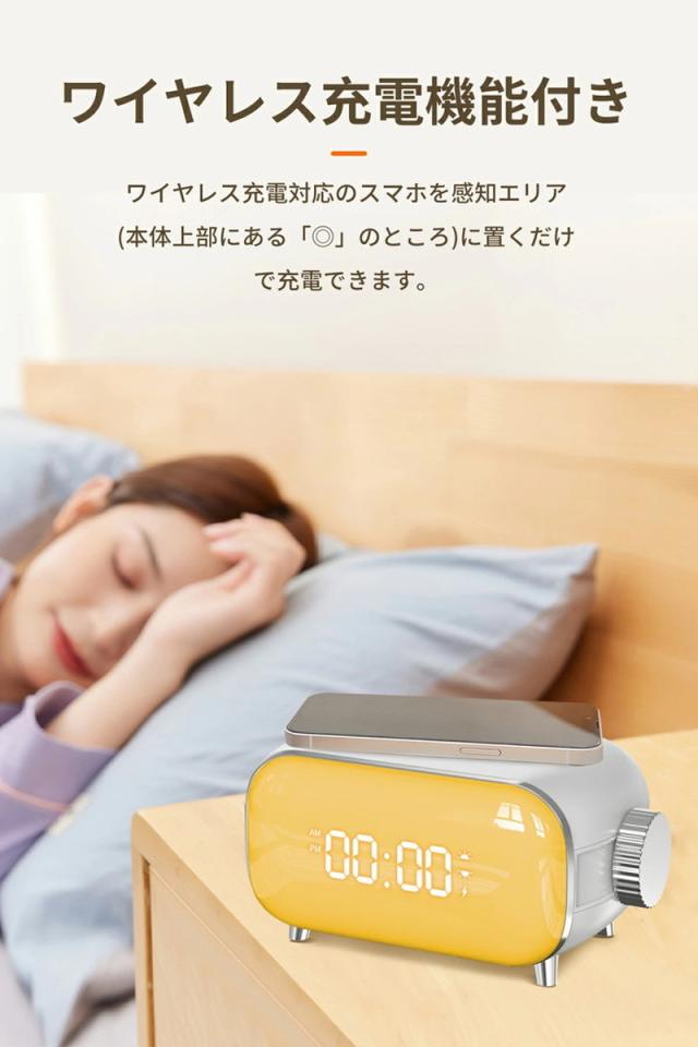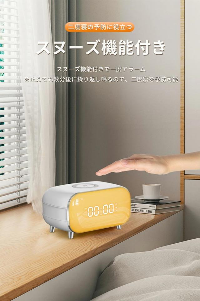 【ワイヤレス充電機能付き】光目覚まし時計 光アラーム 光で起きる ナイトライト ナイトランプ ギフト