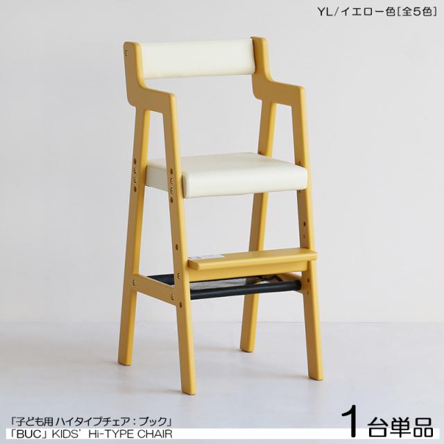 BUC ブック 子供用ハイチェア【1台単品】イエロー色/全5色 天然木 組立商品 キッズサイズ ダイニングチェア 幅35×奥行き40.5×高さ78cm