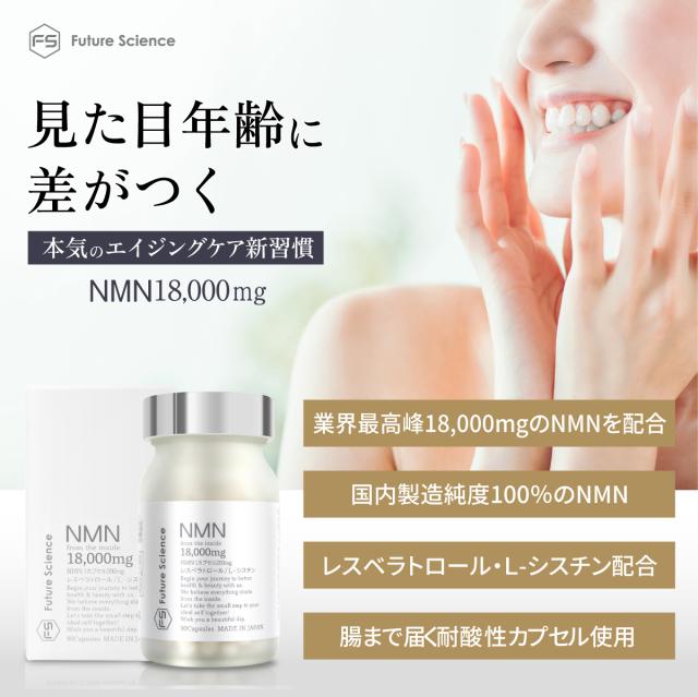 FutureScience NMN 18000 NMNサプリメント β-NMN 18000mg 配合 日本製 高純度100% 国産NMN原料 レスベラトロール L-シスチン配合 90カプセル 腸まで届く耐酸性カプセル 国内GMP認定工場製 nmnサプリ 国産 高配合