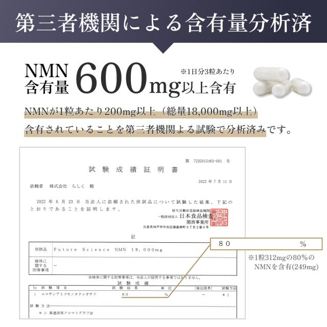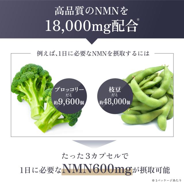 NMN18,000mgは純度100%!1箱18,000mgものNMNを配合!NMN1粒あたり200mg!二酸化チタン不使用!
