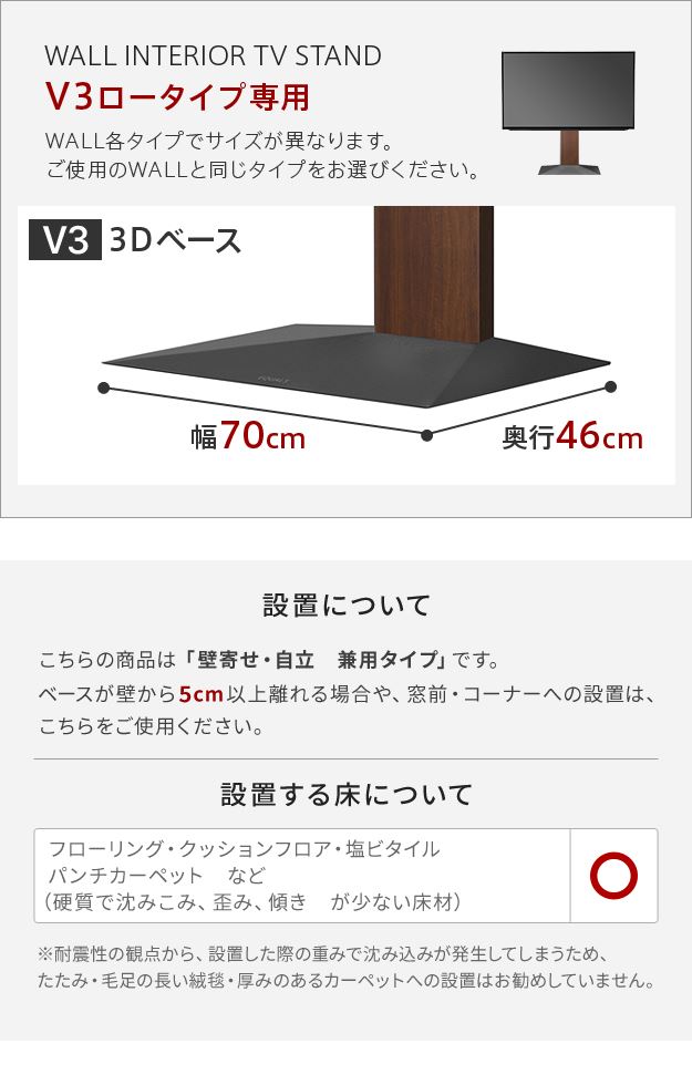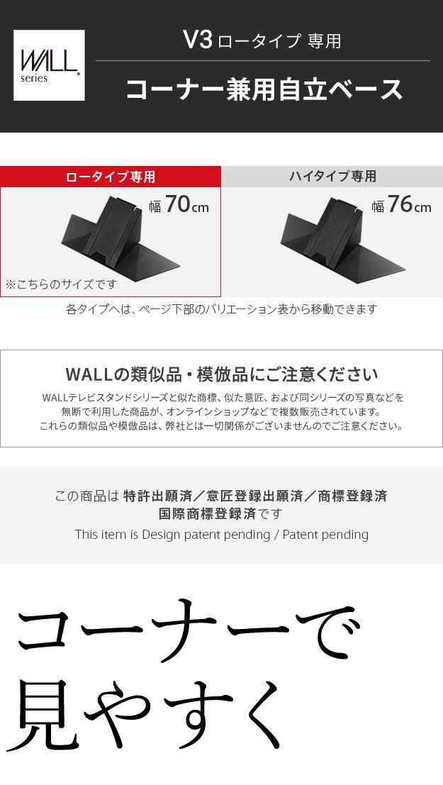 WALLインテリアテレビスタンドV3ロータイプ専用 コーナー兼用自立ベース 幅76cm テレビスタンド 自立 コーナー パーツ WALLオプション EQUALS イコールズ