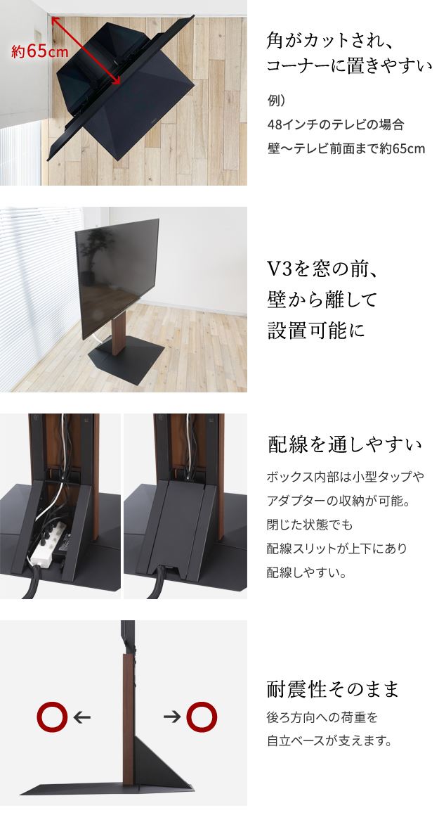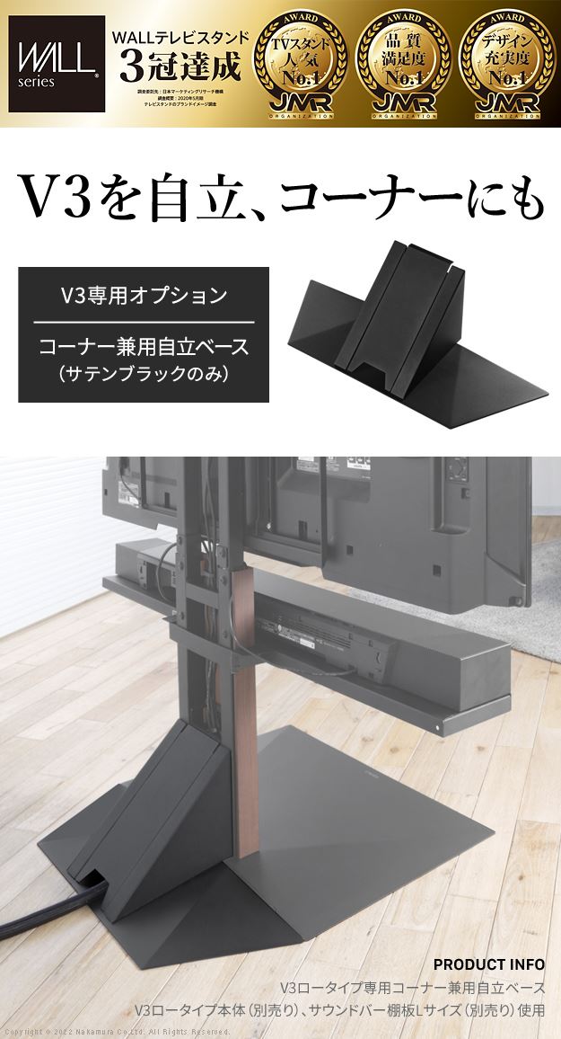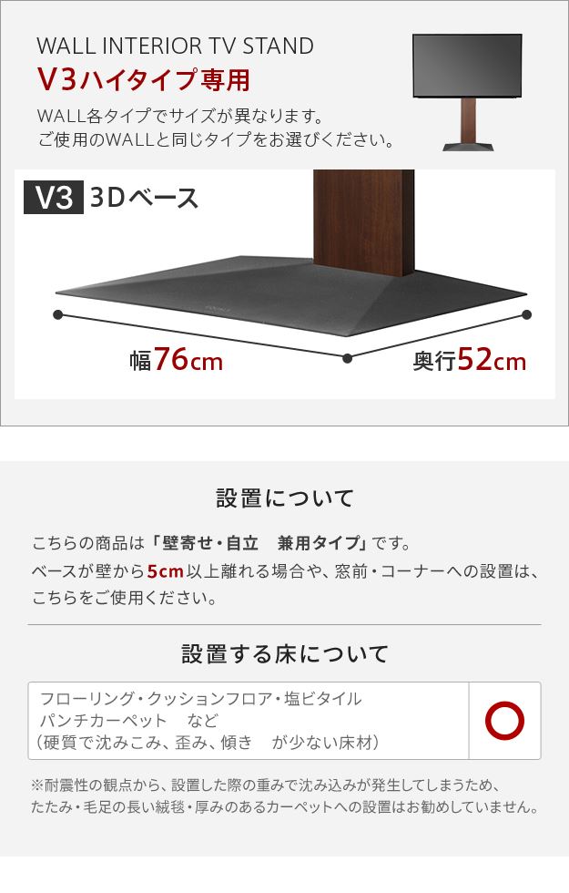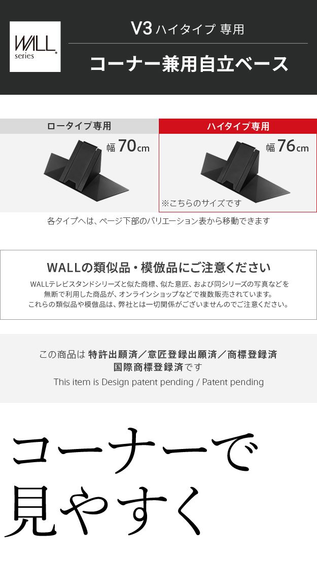 WALLインテリアテレビスタンドV3ハイタイプ専用 コーナー兼用自立ベース 幅76cm テレビスタンド 自立 コーナー パーツ WALLオプション EQUALS イコールズ