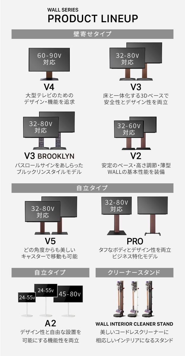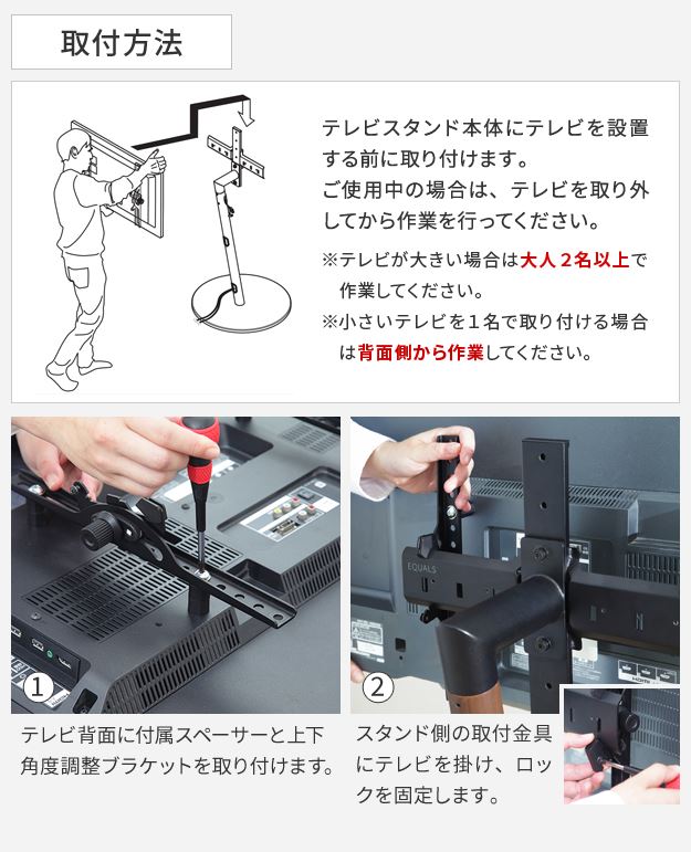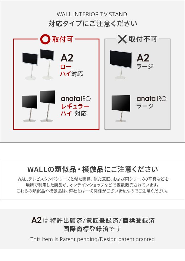 WALLインテリアテレビスタンド A2ロー・ハイタイプ対応 anataIROレギュラー・ハイタイプ対応 上下角度調整ブラケット テレビスタンド EQUALS イコールズ