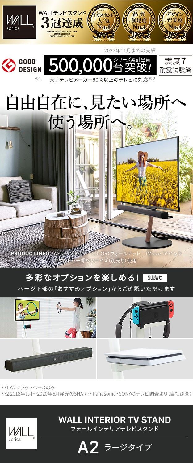 テレビスタンド 壁寄せ テレビ台 WALL A2 ラージタイプ 45〜80v対応 大型テレビ対応 自立型 壁掛け風 TVボード
