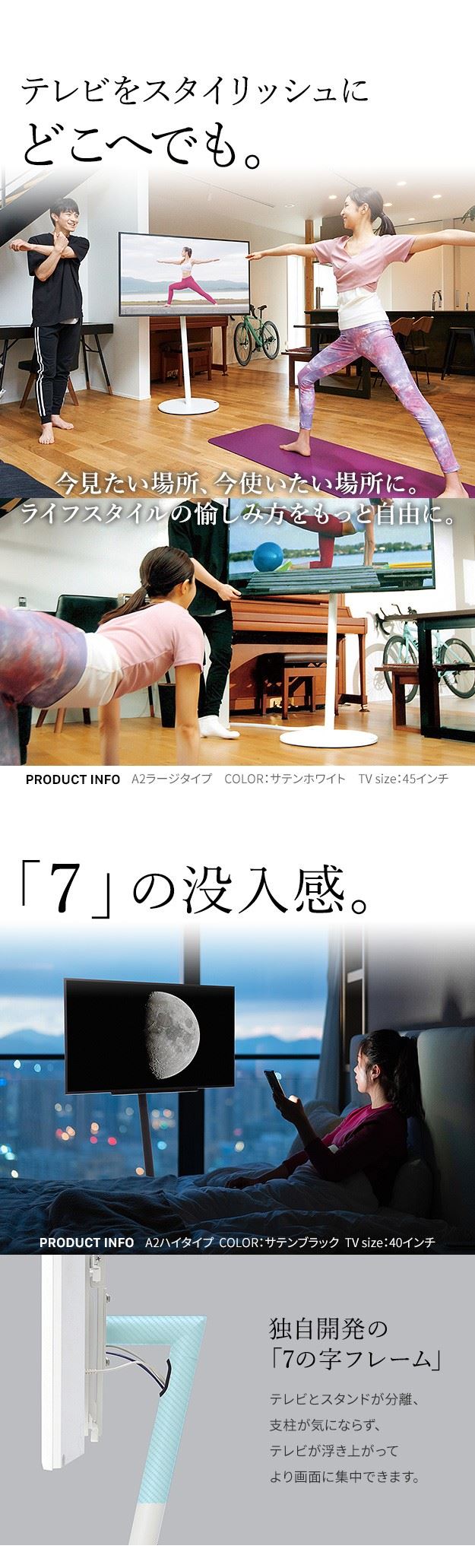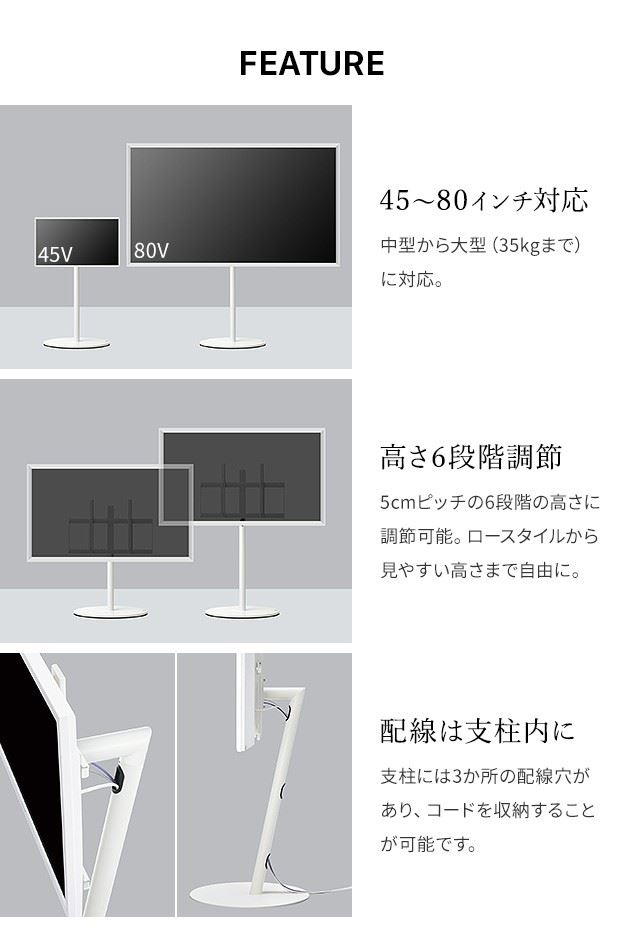 対応テレビサイズ:45インチ~80インチ(20kg相当)まで