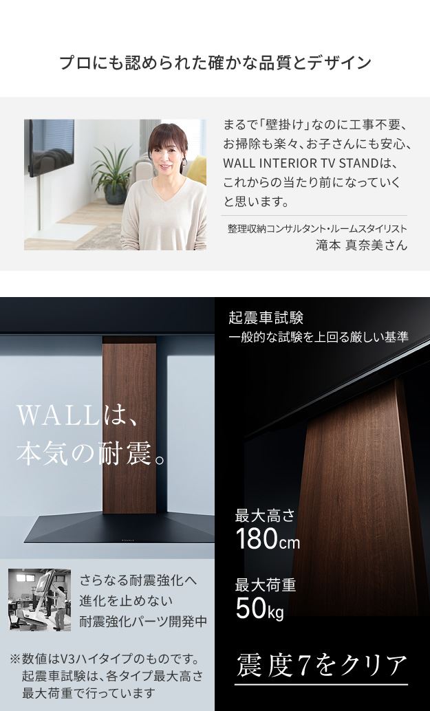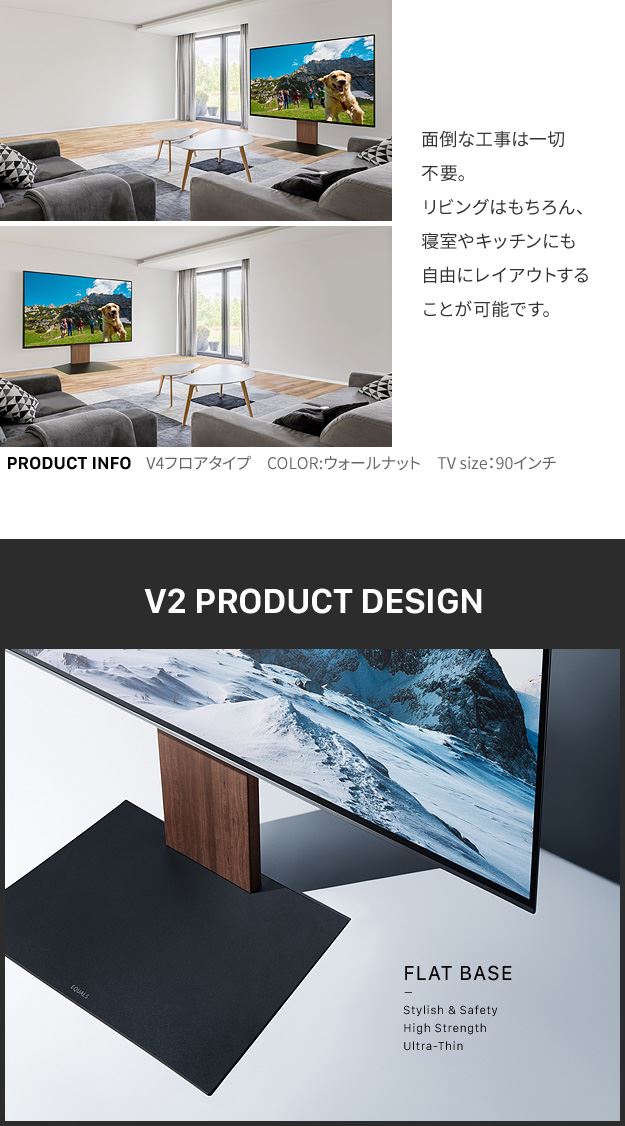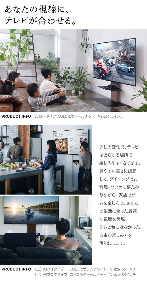 テレビスタンド 壁寄せ テレビ台 組立設置付き WALL V2 ロータイプ 32~60v対応 壁寄せテレビ台 TVボード