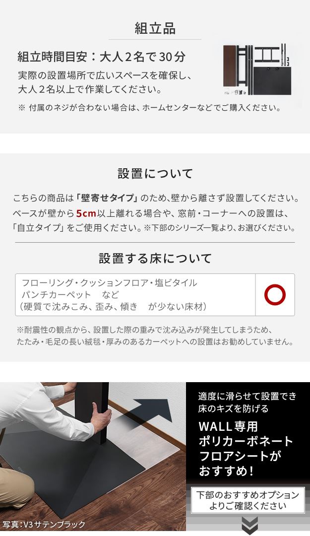 テレビスタンド 壁寄せ テレビ台 組立設置付き WALL V2 ハイタイプ 32~60v対応 壁寄せテレビ台 TVボード