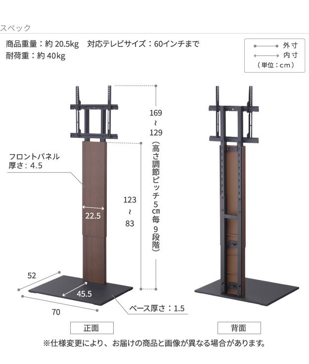 幅70x奥行52x高さ129〜169cm