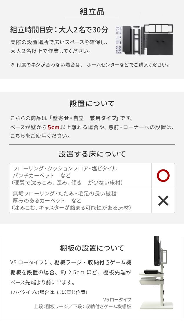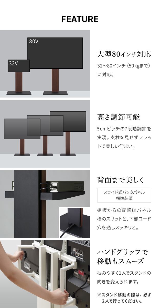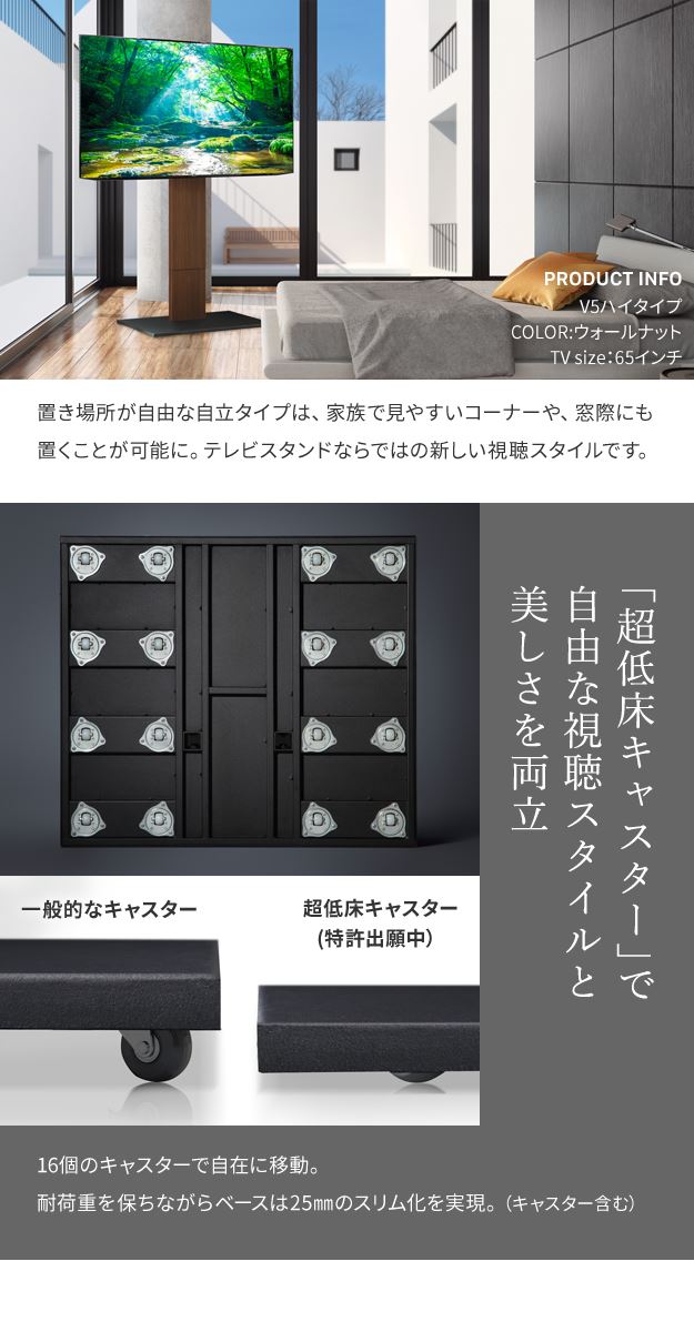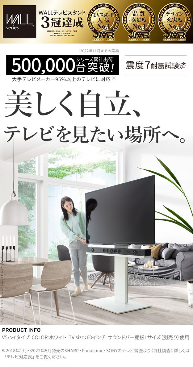 テレビスタンド 壁寄せ テレビ台 組立設置付き WALL V5 ハイタイプ 32〜80v対応 大型テレビ対応 背面収納 自立型 キャスター付き