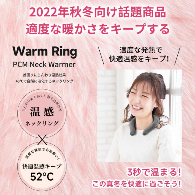 ウォームリング 温感ネックリング ネックウォーマー ホットリング ネックウォーム 防寒リング 52℃ 温感 pcm 冷え性対策 冷え性改善 電気不要 繰り返し使用 防寒 軽量 通勤通学 男女兼用 送料無料 グレー