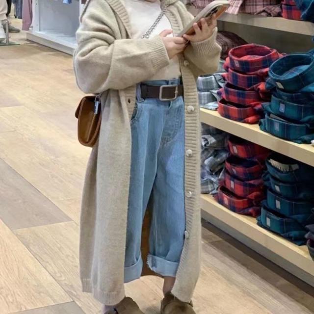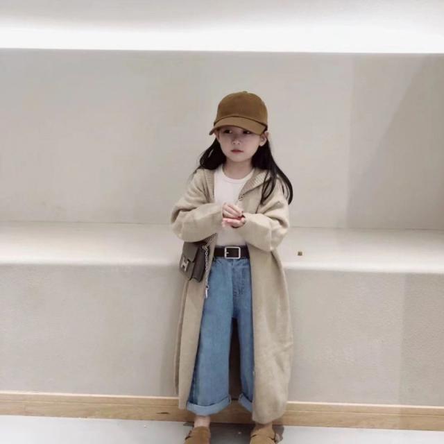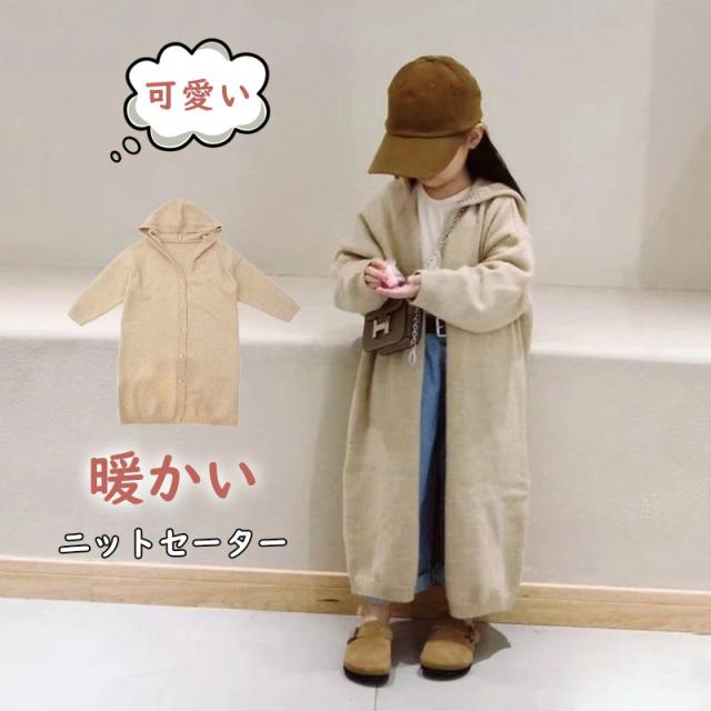ニットセーター 秋冬 子供服 カーディガン キッズ 女の子 ニット ロング ロングカーディガン フード付き カジュアル 子供 羽織