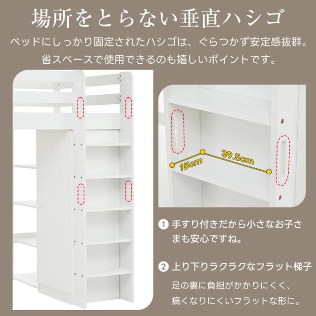 「クーポン配布中」ロフト・システムベッド ロフトベッド システムベット 頑丈 ワードローブ 収納付き 北欧風 コンセント付き シェルフ付き シングル 宮付き 階段付き 耐震ベッド 子供ベッド 垂直ハシゴ 子供部屋 収納棚付き 収納 北欧風 大人 一人暮らし 新生活